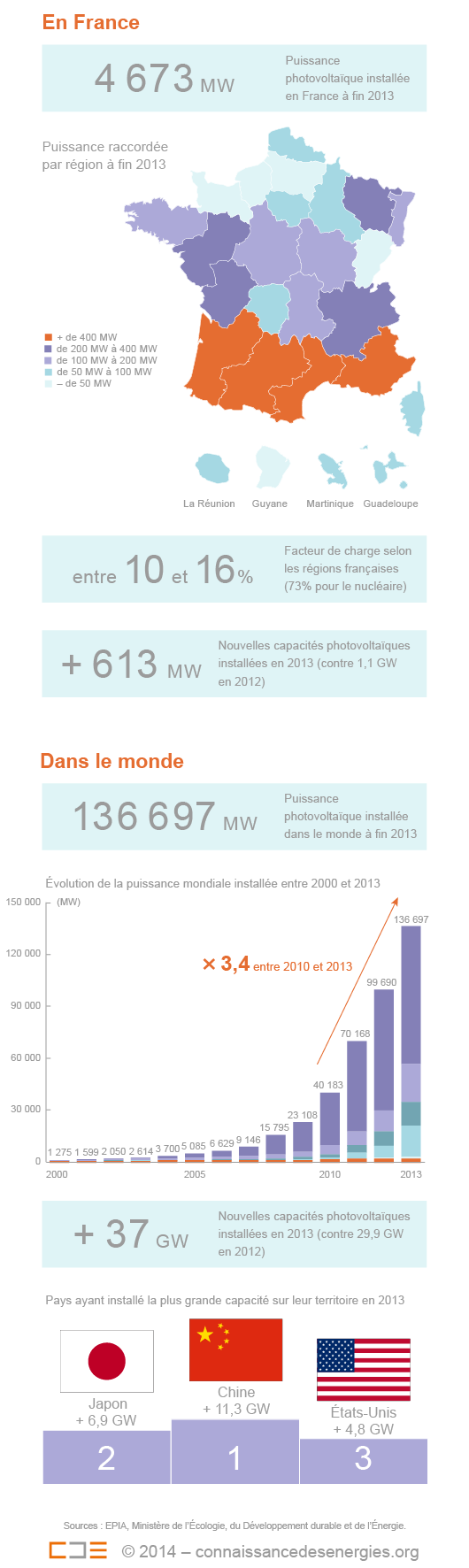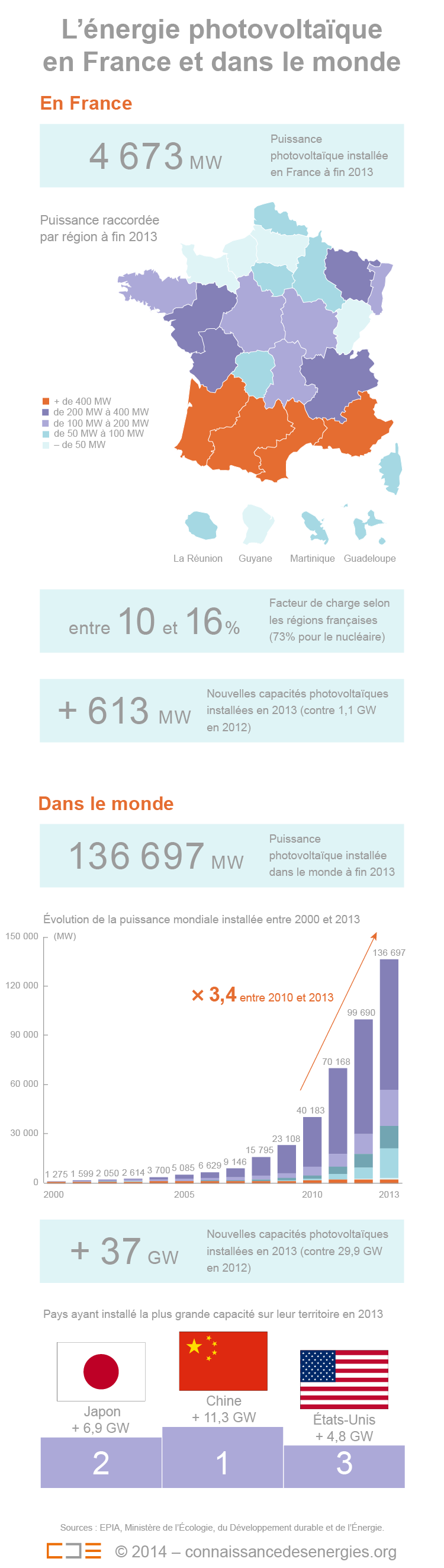 L'énergie photovoltaïque en France et dans le monde en 2013 (©Connaissance des Énergies)