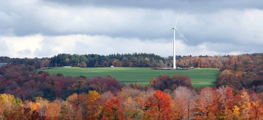 Vue d'une des 75 éoliennes du parc de High Sheldon dans l’État de New York. (©Invenergy)