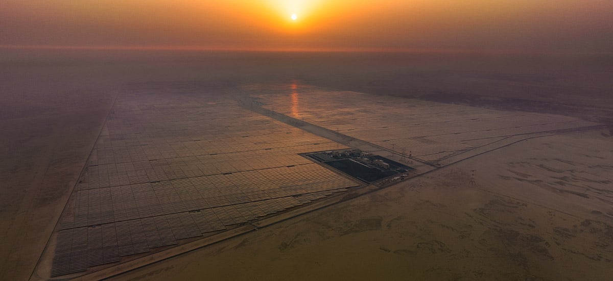 Situé dans le désert à 35 km de la capitale Abou Dhabi, le parc solaire d'Al Dhafra est présenté comme « la plus grande centrale solaire à site unique au monde » : il est constitué de presque 4 millions de panneaux solaires photovoltaïques bifaces, d'une puissance cumulée avoisinant 2 GW.