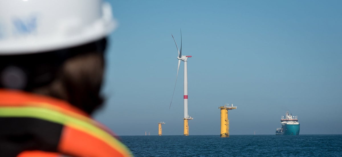 En 2022, l'éolien a été dépassé par le gaz comme 3e source d'électricité en France. Ici, la première éolienne offshore du parc de Saint-Nazaire. (©CAPA Corporate)