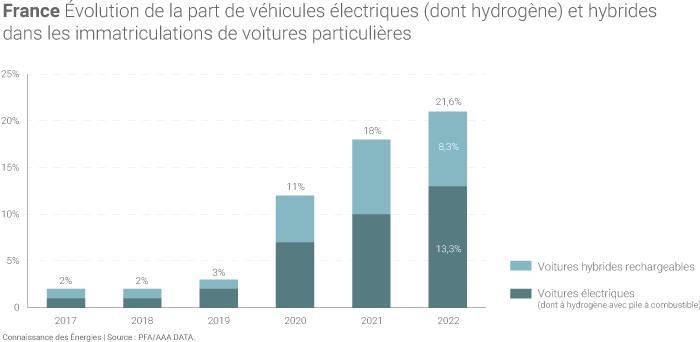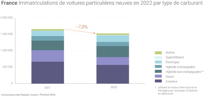 Précisons que les immatriculations de voitures particulières tout électriques ont progressé d'environ 25% tandis que celles de véhicules hybrides rechargeables (davantage liées aux commandes de sociétés) ont reculé de près de 10% en 2022 (par rapport à 2021).