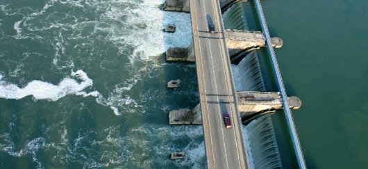 Vue aérienne du barrage d'Iffezheim. (©EDF-Thierry Dichtenmuller)