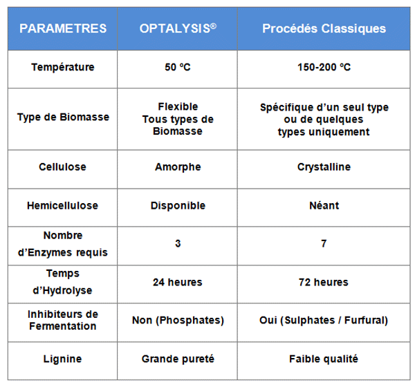 Comparaison du procédé Optalysis et des procédés classiques (©Biométhodes)