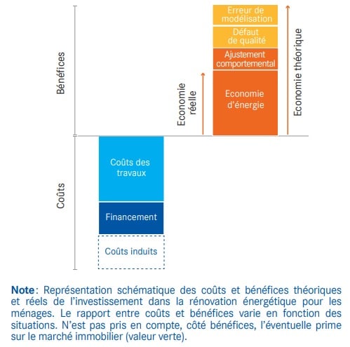 Schéma du Conseil d'analyse économique sur les coûts et bénéfices privés d’une rénovation énergétique