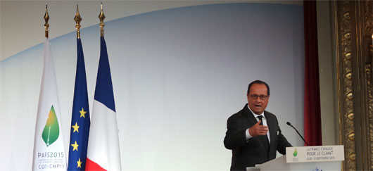 Près de 3 mois avant le début de la COP21, une cérémonie de mobilisation en vue du rendez-vous climatique s'était tenue le 10 septembre 2015 à l’Elysée en présence de 400 invités (élus, chefs d’entreprises, représentants d’ONG, artistes, etc.).