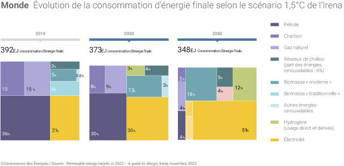 Une très forte électrification dans le scénario 1,5°C de l'Irena