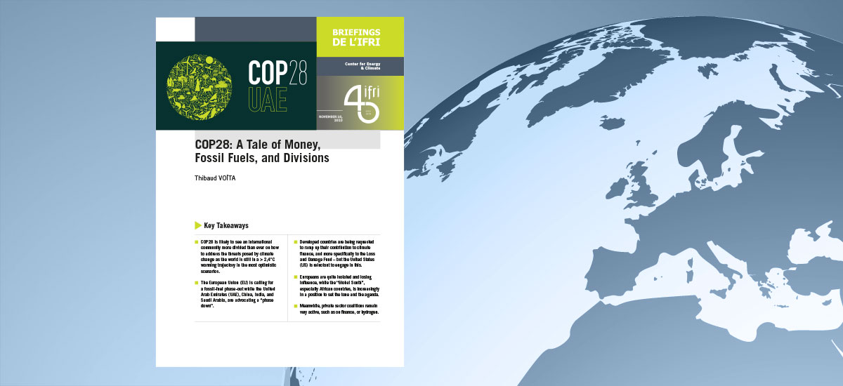 Dans la note en anglais ci-après publiée ce 16 novembre par le Centre Énergie & Climat de l'Ifri, Thibaud Voïta(1) fait état des positions actuelles et divergences des grandes puissances, en soulignant que le monde suit une trajectoire de réchauffement supérieur à 2,4°C dans les scénarios les plus ambitieux.