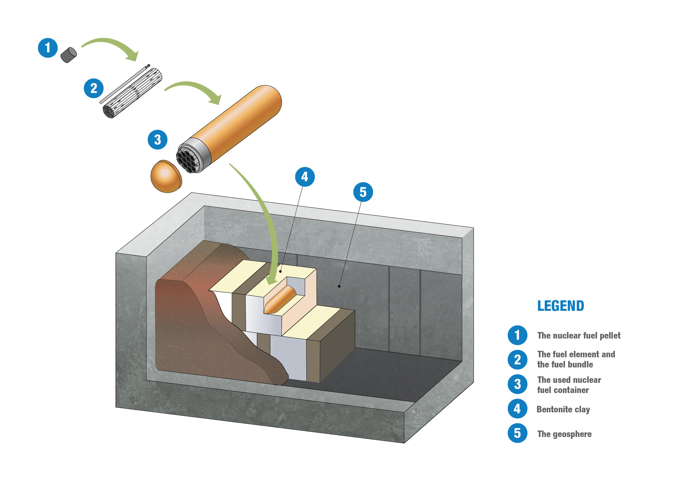 Le projet canadien prévoit quant à lui un concept « multi-barrières » (avec 5 barrières successives) et un stockage dans une roche cristalline.