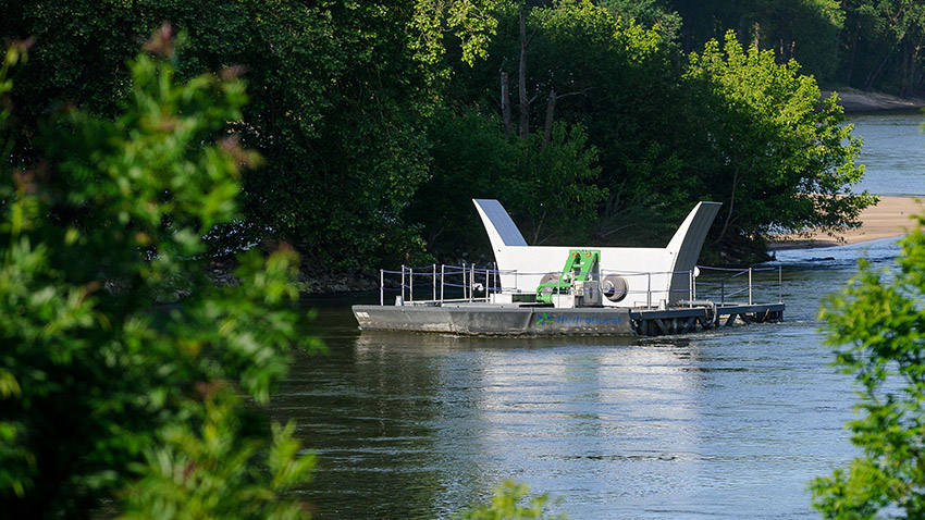 Les hydroliennes visent traditionnellement à transformer l’énergie cinétique des courants marins en électricité. Des prototypes de plus faible puissance ont également été testés dans des fleuves, notamment à Orléans. La société grenobloise HydroQuest, « leader mondial » du marché émergent de l'hydrolien fluvial, a depuis plusieurs années pu « étudier et améliorer l'ensemble de son système » (fonctionnement de l'hydrolienne, flotteurs de la barge, système de grille autonettoyant, etc.), indique son président Jean-François Simon.