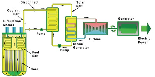 Comme le concède David LeBlanc, CTO(7) de la société canadienne Terrestrial Energy, la technologie des réacteurs à sels fondus n’a rien de nouveau. Ce concept remonte aux années 1950/1960, un premier prototype ayant été exploité entre 1965 et 1969 par le laboratoire américain d’Oak Ridge dans le Tennessee. Cette technologie revient toutefois « au goût du jour » selon David LeBlanc en raison de ses gros avantages en matière de sûreté (au regard des « 3 C » : « Cool – Contain – Control »).
