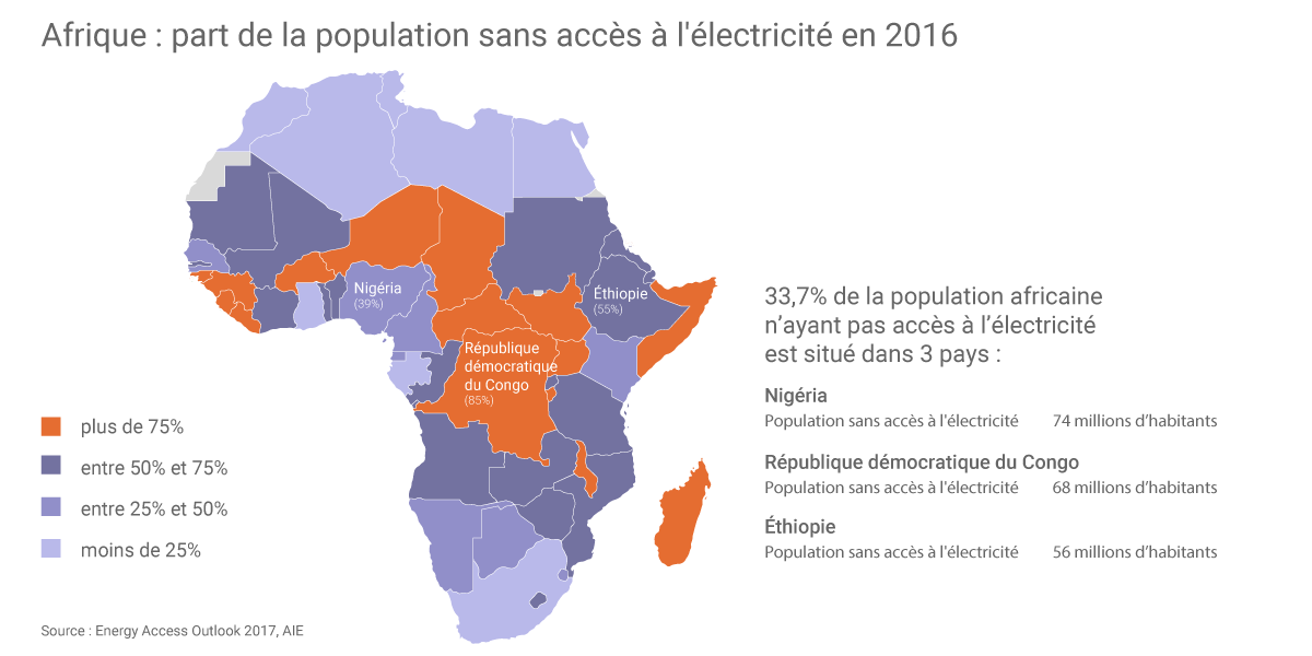 Rappelons que près d’un milliard de personnes dans le monde n’avaient toujours pas accès à l’électricité en 2017 d’après les dernières données de l’Agence internationale de l’énergie (AIE)(7).
