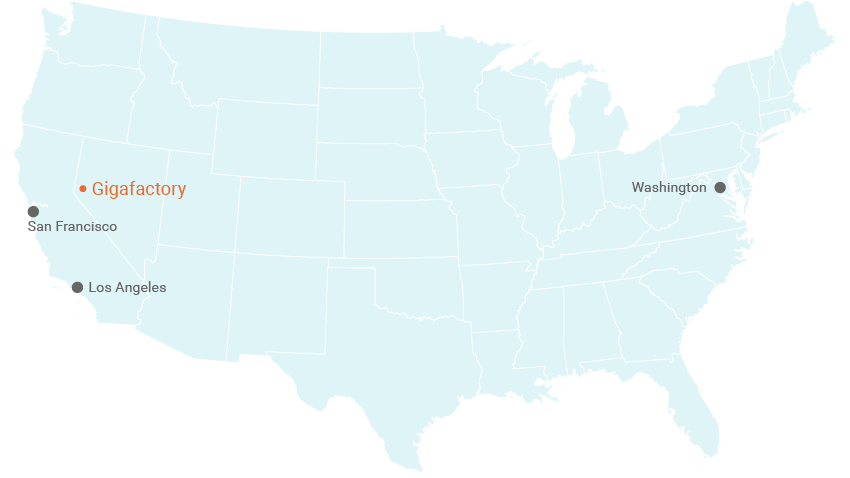 En 2018, Tesla envisage de produire l’équivalent de 35 GWh de capacités de stockage par an (1 GWh = 106 kWh), soit quasiment autant que le reste de la production mondiale. D’ici là, la Gigafactory pourrait, selon le groupe, être devenu le plus grand bâtiment au monde. La surface au sol de l’usine avoisine actuellement 175 500 m2 (l’espace disponible dépasse 455 000 m2 en comptabilisant les différents niveaux du site) mais seule 30% de l’usine finale a émergé à ce jour du désert, la construction devant se poursuivre jusque fin 2018.