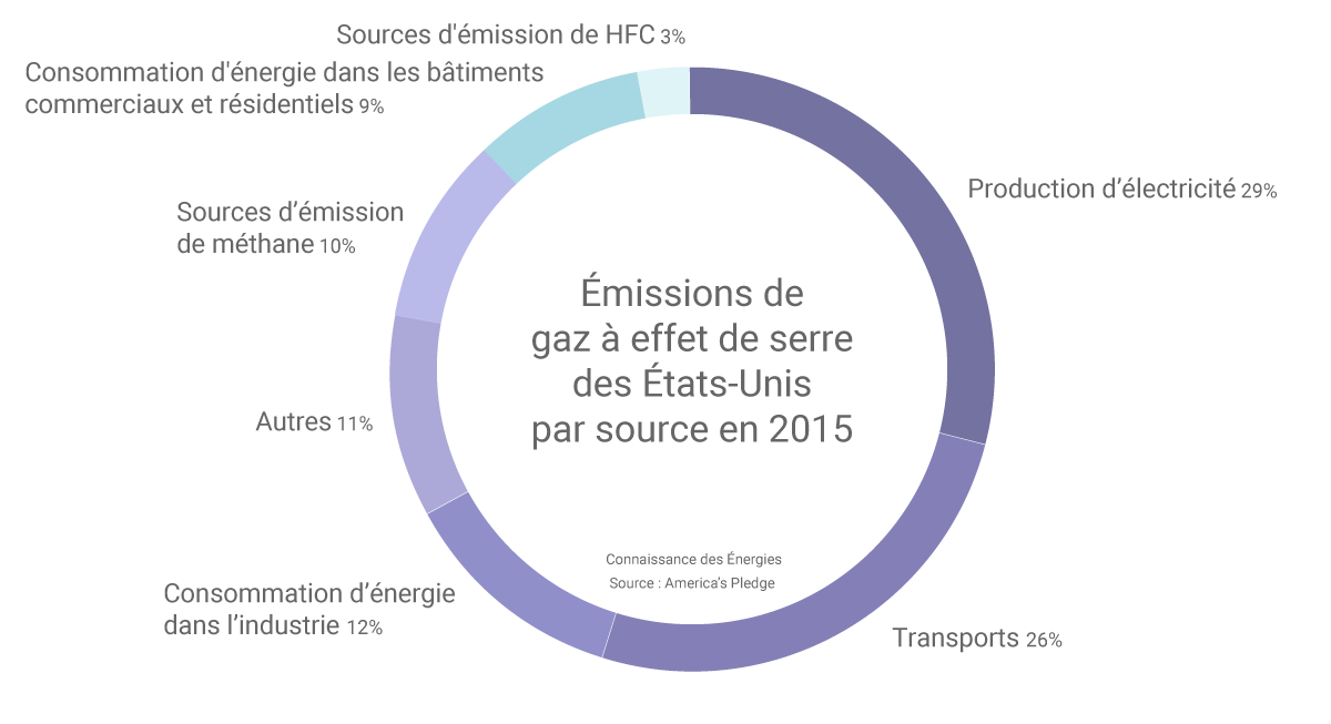 Pour rappel, Barack Obama avait engagé les États-Unis à réduire de 26% à 28% les émissions américaines de gaz à effet de serre d'ici à 2025 par rapport au niveau de 2005. A fin octobre 2017, 20 États américains et 110 villes du pays disposaient de leurs propres objectifs de réduction d’émissions, pour certains « aussi ambitieux que les contributions les plus ambitieuses des Parties de l’Accord de Paris ».