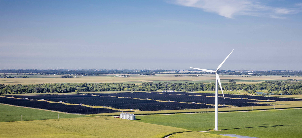 Éolienne et panneaux photovoltaïques dans l'Illinois (©Invenergy)