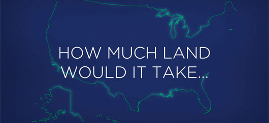 En s’appuyant sur une étude du NREL (laboratoire américain sur les énergies renouvelables) de juin 2013, la vidéo indique que la production de 1 GWh pourrait être satisfaite par une surface « solaire » de 2,8 acres (soit environ 0,011 km2). Cette emprise au sol correspond, selon le NREL, aux installations solaires les plus « performantes » au regard de ce critère, c’est-à-dire des grandes centrales photovoltaïques de plus de 20 MW constituées de panneaux à concentration à 2 axes. Dans le cas de panneaux fixes sur des toitures de particuliers, l’emprise au sol avoisinerait par exemple 4,4 acres pour atteindre une production annuelle de 1 GWh.