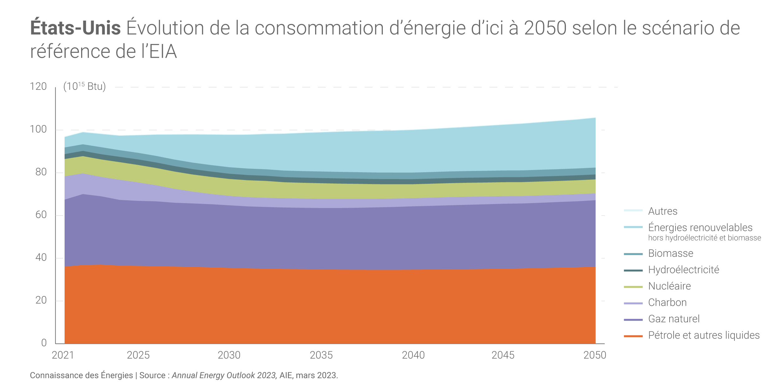 Consulter l'« Annual Energy Outlook 2023 with projections to 2050 » de l'EIA.