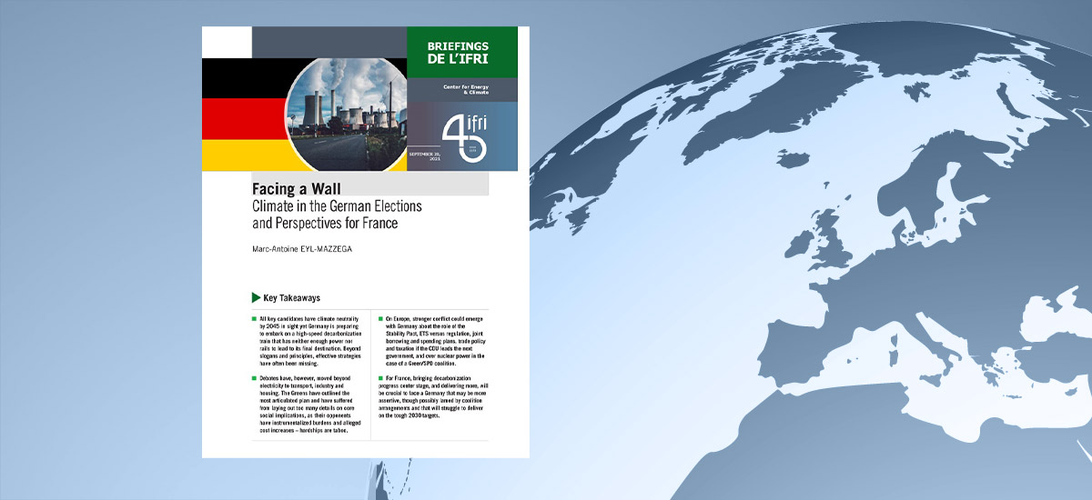 Ce 26 septembre 2021 auront lieu les élections fédérales en Allemagne qui déboucheront sur le départ de la chancelière Angela Merkel, à la tête de l'Allemagne depuis 16 ans. En matière d'énergie, ses mandats ont entre autres été marqués par « la sortie du nucléaire accélérée et coûteuse (achevée en 2022), la sortie lente du charbon (2038), un développement cahoteux des énergies renouvelables et des réductions des émissions de CO2 insuffisantes » selon Marc-Antoine Eyl-Mazzega.