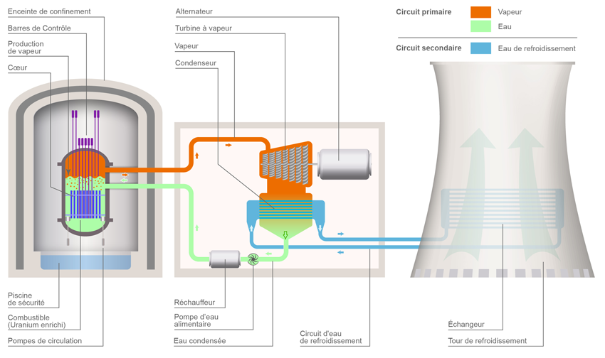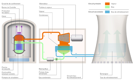 Principe de fonctionnement d'un réacteur à eau bouillante, type installé à Fukushima Daiichi (©2011)