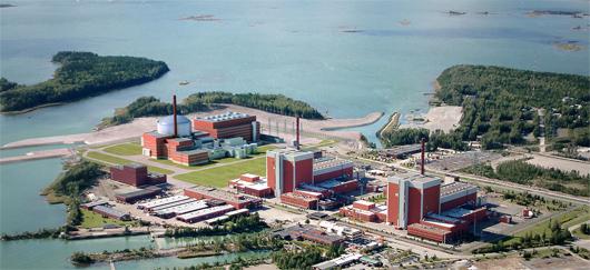 Réacteur EPR conçu par Areva (sur la gauche), centrale d'Olikluoto en Finlande (©TVO)