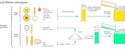 Commençons par ceux de première génération, produits à partir de matières végétales.