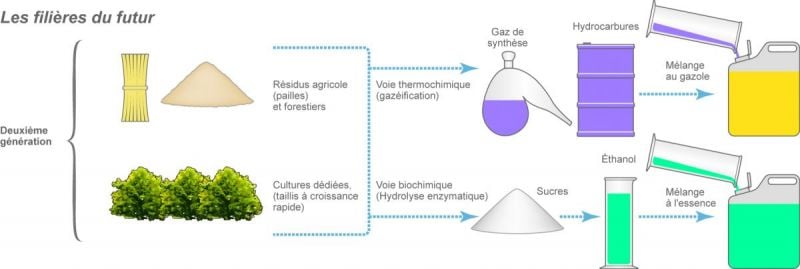 Biocarburant de deuxième génération (©DR, d'après source IFP)