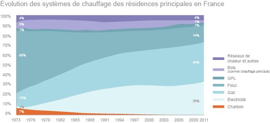Entre 2005 et 2011, la consommation de chauffage par logement a baissé de près de 2,8% par an. (©Connaissance des Énergies)