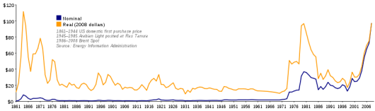 L’augmentation des cours se poursuit jusqu’à atteindre un pic record de 144,27 $ à New-York le 2 juillet 2008. Les conséquences à moyen terme de l’augmentation du prix du pétrole dans les années 2000 sont encore difficiles à évaluer, notamment à cause de la crise financière qui s’est déclarée fin 2008.