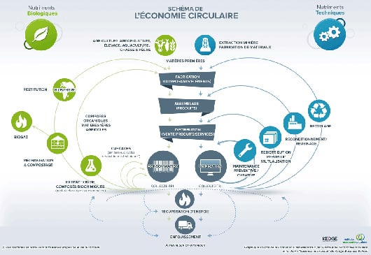 Schéma d'économie circulaire (d'après « L'économie circulaire », Rémy Le Moigne, éditions Dunod)
