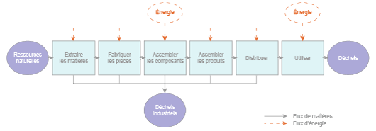 Schéma d'économie linéaire (d'après « L'économie circulaire », Rémy Le Moigne, éditions Dunod)