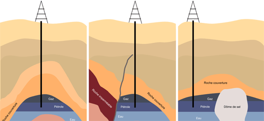 L’ensemble roche-réservoir/roche-couverture forme une structure dite de « piège à pétrole ». Plusieurs types de pièges sont décrits, principalement en fonction de la déformation des roches au cours de phénomènes géologiques.