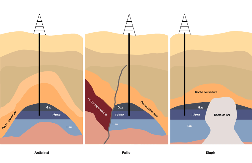 Les principaux types de pièges à pétrole (©Connaissance des Énergies)