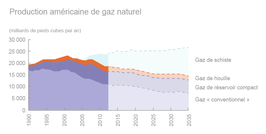 La production américaine de gaz de houille a été de 49,9 milliards de m3 en 2011(1), l’équivalent de près de 7% de la consommation gazière de ce pays durant cette année ;