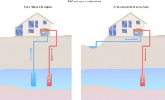Schéma des pompes à chaleur sur nappes d'eau (©CDE)