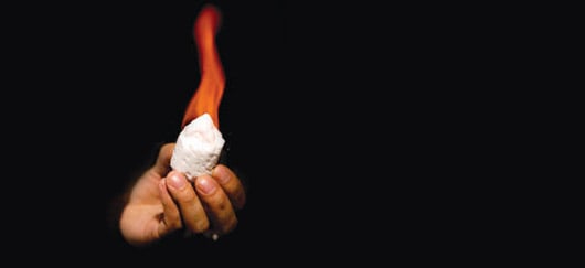 À haute pression, les hydrates de méthane restent « gelés » même si la température dépasse le point de fusion de la glace, comme l'illustre cette « boule de neige en feu ». (©Conseil national de recherches Canada)