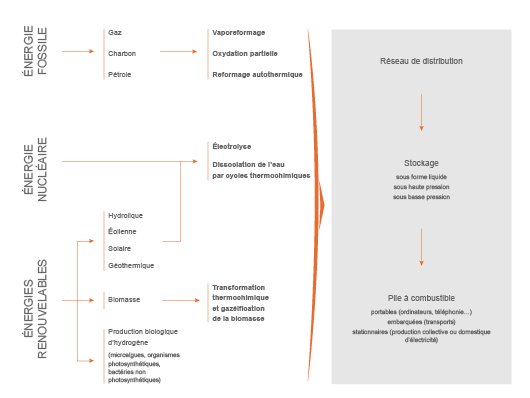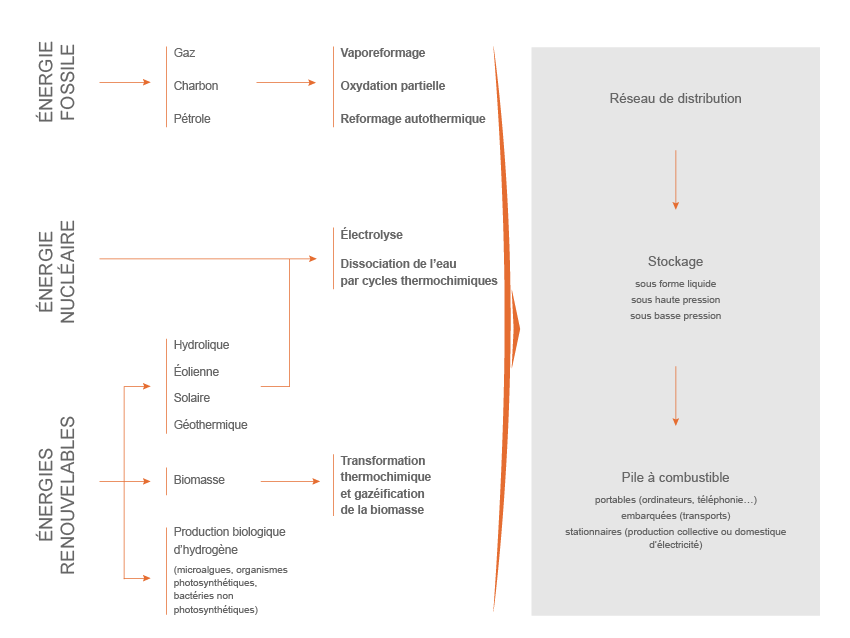 - les centres de recherche qui travaillent sur les procédés de production et de transport les plus performants : en France, notamment le CEA, le CNRS ou IFP Énergies nouvelles ;