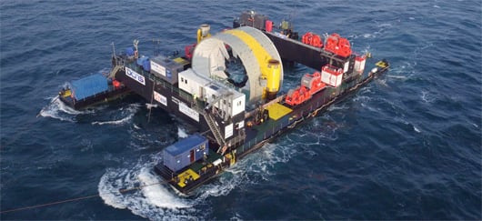 Mise à l'eau en mai 2016 de la deuxième hydrolienne Naval Energies/OpenHydro sur le parc démonstrateur d’EDF de Paimpol-Bréhat (©Naval Energies)