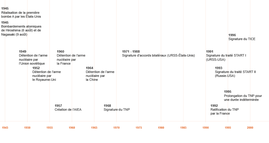La Seconde Guerre mondiale s’est achevée en 1945 par les bombardements atomiques de Hiroshima et Nagasaki. Le risque de prolifération, c'est-à-dire de développement d’armements nucléaires un peu partout dans le monde, est apparu rapidement comme un danger majeur.