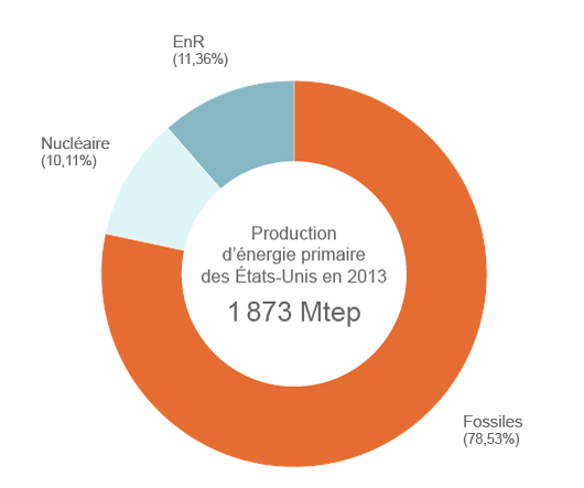 Sur son territoire, le pays produit près de 1 873 Mtep en 2013(1), soit approximativement 82,7% de ses besoins énergétiques. La production d’importantes quantités d’hydrocarbures non conventionnels ces dernières années tend à accroître ce pourcentage. Cette évolution devrait se poursuivre durant les prochaines décennies selon l’AIE (Agence Internationale de l’Energie).