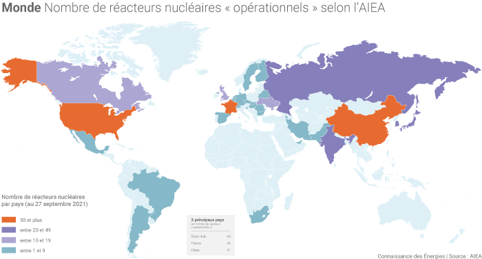 • Au 20 janvier 2025, 417 réacteurs nucléaires sont « opérationnels » dans le monde selon l'AIEA.