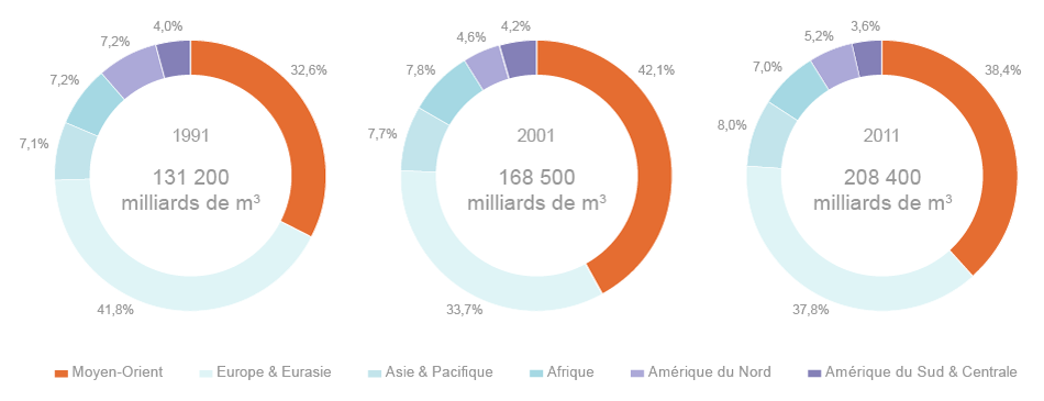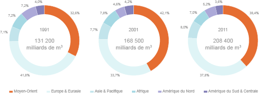 Niveau et répartition des réserves mondiales de gaz