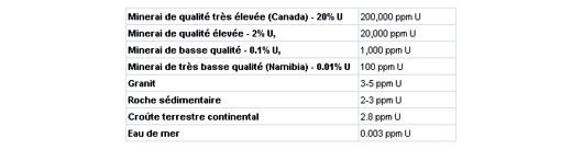 Minerai de basse qualité - 0.1% U1 000 ppm U
