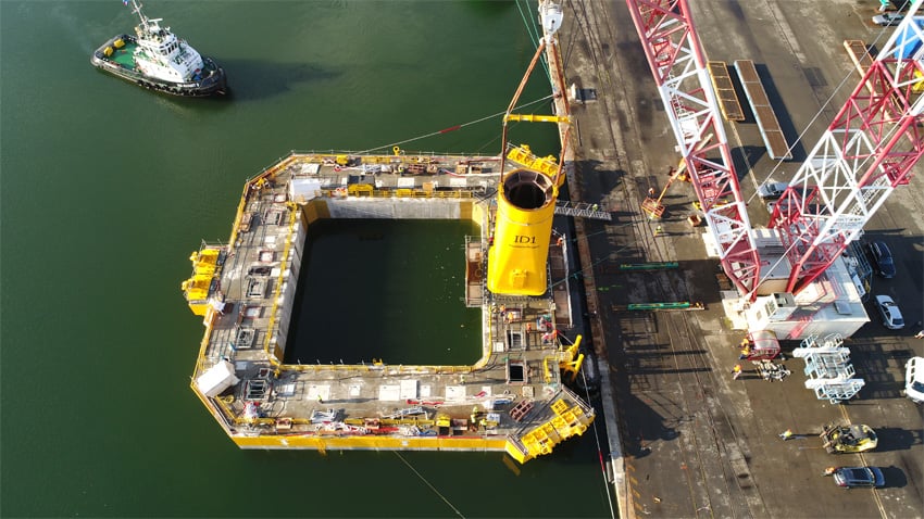 L’éolienne Floatgen a pu être entièrement assemblée à quai, a insisté le PDG d'Ideol lors de l’inauguration. « Les éoliennes flottantes ont pour premier avantage sur les éoliennes posées de pouvoir être montées à terre, plutôt qu'en pleine mer, ce qui limite à la fois les risques et les coûts », a ainsi rappelé Paul de la Guérivière.