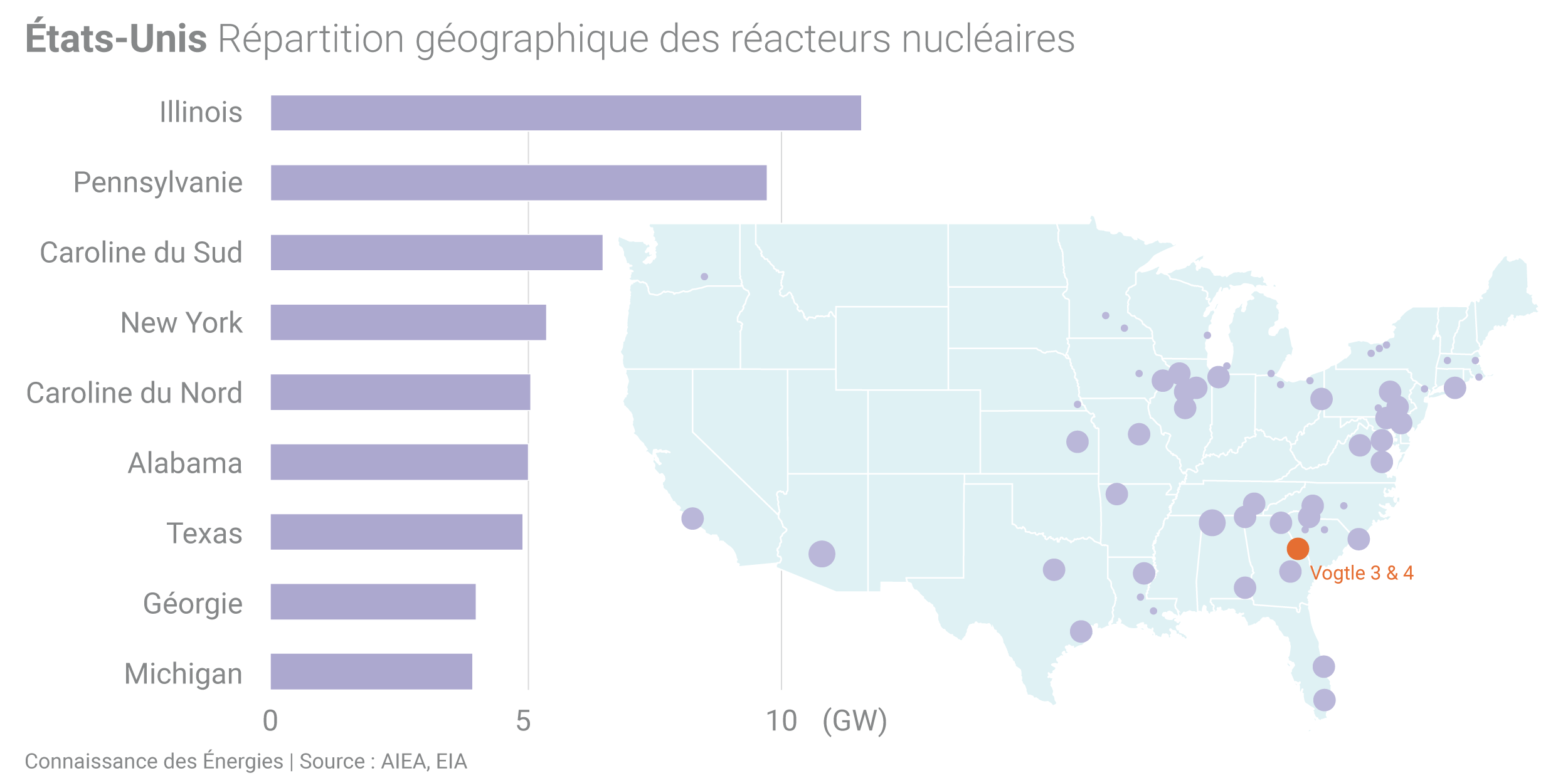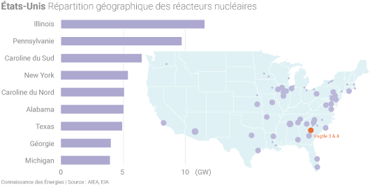 La construction de deux nouveaux réacteurs - les premiers de 3e génération (AP1000 de technologie Westinghouse) aux États-Unis – constituent ainsi un événement important pour l’industrie nucléaire américaine. Ces réacteurs sont édifiés au sein de la centrale de Vogtle, située à Waynesboro (près d’Augusta en Géorgie), qui compte déjà deux réacteurs à eau pressurisée connectés au réseau depuis près de 30 ans (1987 pour Vogtle 1, 1989 pour Vogtle 2).