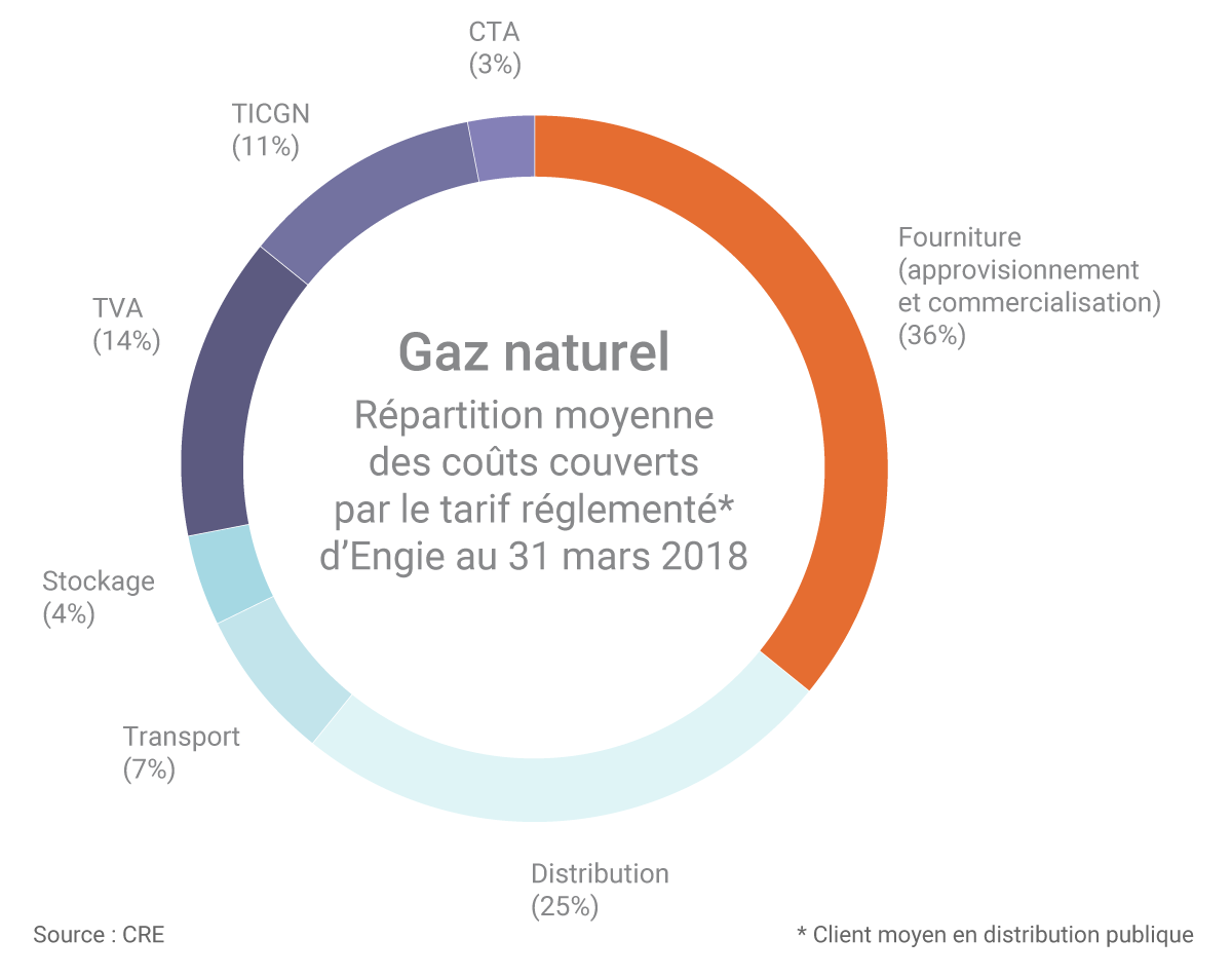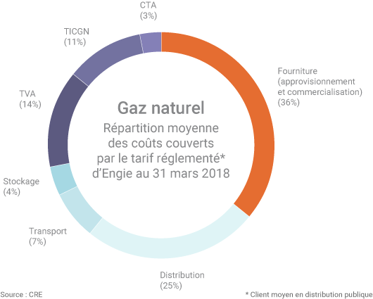 Il est inscrit dans le code de l’énergie que ces tarifs doivent couvrir les différents coûts supportés par le fournisseur, à savoir « les coûts d’approvisionnement en gaz naturel et les coûts hors approvisionnement » incluant les coûts d’infrastructures (distribution, transport, stockage) et de commercialisation(1).