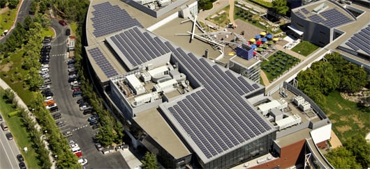 Des panneaux solaires sont installés sur le Googleplex, siège du groupe à Mountain View, Californie. (©photo)