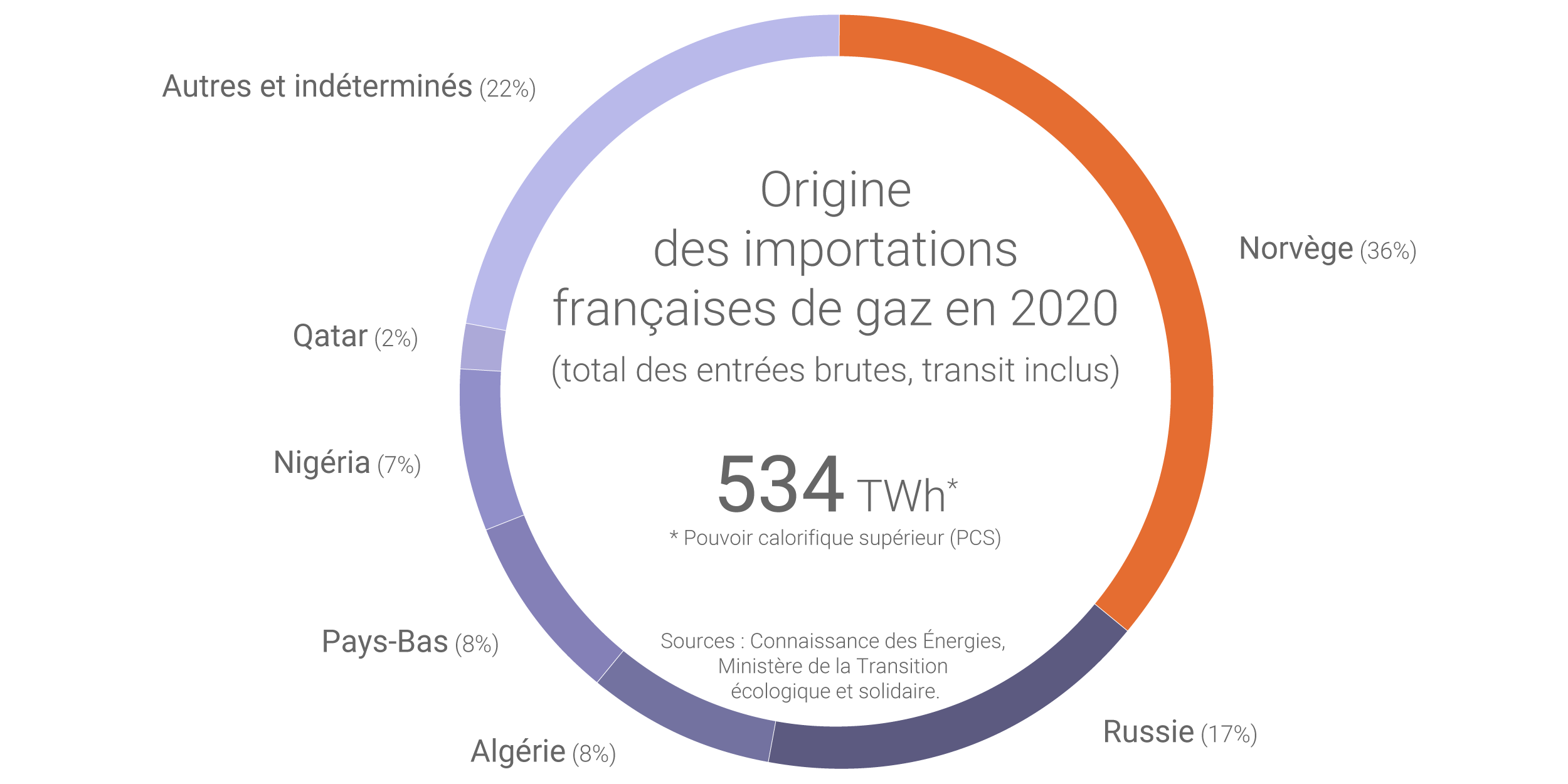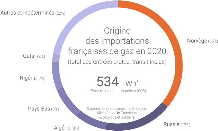 - la Norvège (36% des entrées brutes de gaz en France en 2020) ;