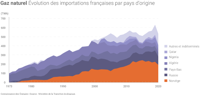 Même avant le début de l'invasion de l'Ukraine et la crise énergétique de 2022 (entraînant une envolée des livraisons de GNL américain), la Russie n'était pas le premier fournisseur de gaz de la France, mais le deuxième après la Norvège.
