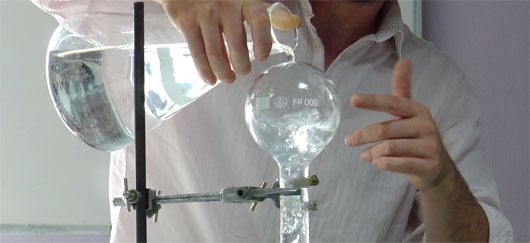 L'expérience du « bouillant de Franklin » permet de vérifier l'influence de la pression sur la température l'ébullition d'un liquide(1). (©Maël Dancette)