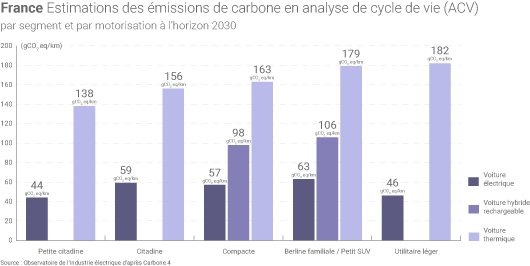 Pour connaître l’empreinte énergétique et carbone globale de ces véhicules et comparer notamment les modèles électriques et hybrides, une « analyse en cycle de vie » (ACV) est nécessaire (« cradle to grave » en anglais), en intégrant notamment en amont les émissions liées à la production du véhicule et de ses composants, à la production des carburants ou de l’électricité et en aval les émissions liées au traitement des déchets.