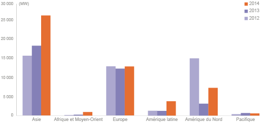 L'Europe est le deuxième continent au monde en matière de puissance éolienne installée, dépassé par l’Asie en 2014.